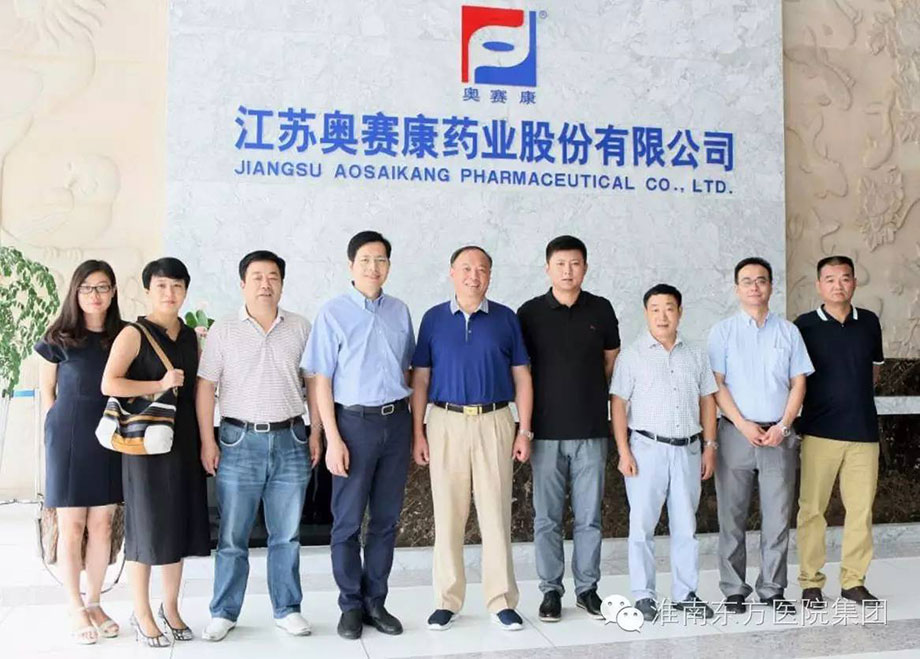 參觀江蘇奧賽康藥業參觀四家公司期間,揚子江藥業的梁總、濟川藥業的徐總、上海聯影的唐總、江蘇奧賽康的徐總均對江董      事長一行的到來給予熱烈歡迎,并陪同參觀了廠區和展覽大廳。交談中,江鴻方董事長就東方醫院集團及康寶藥業的發展狀況進行了詳細的介紹,并對下一步深入合作提出了建設性意見。同時,江鴻方董事長會談時反復強調,康寶藥業是東方醫院集團唯一藥品供應單位。