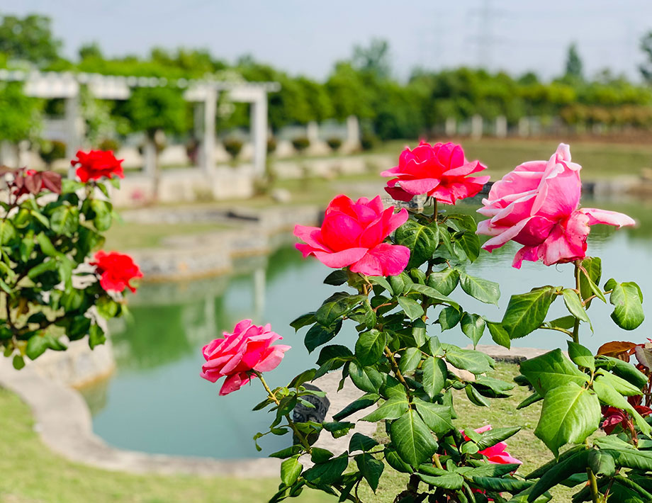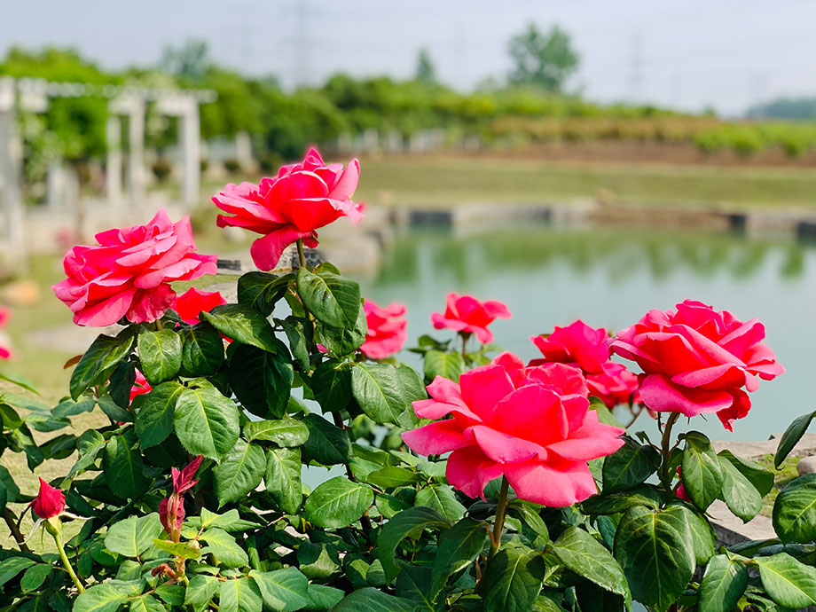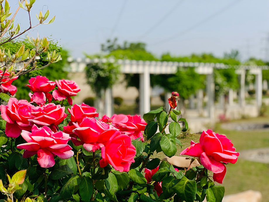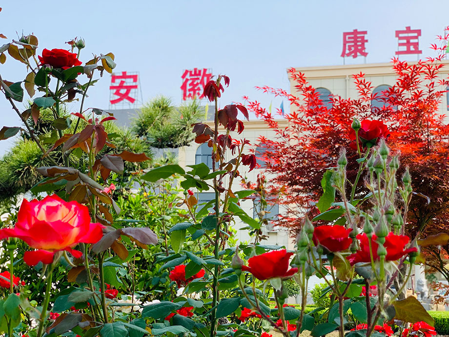 春夏之交,繁花將盡,但園區里一棵棵開得正艷,花香四溢月季花,卻給康寶藥業帶來了令人欣喜的驚艷。