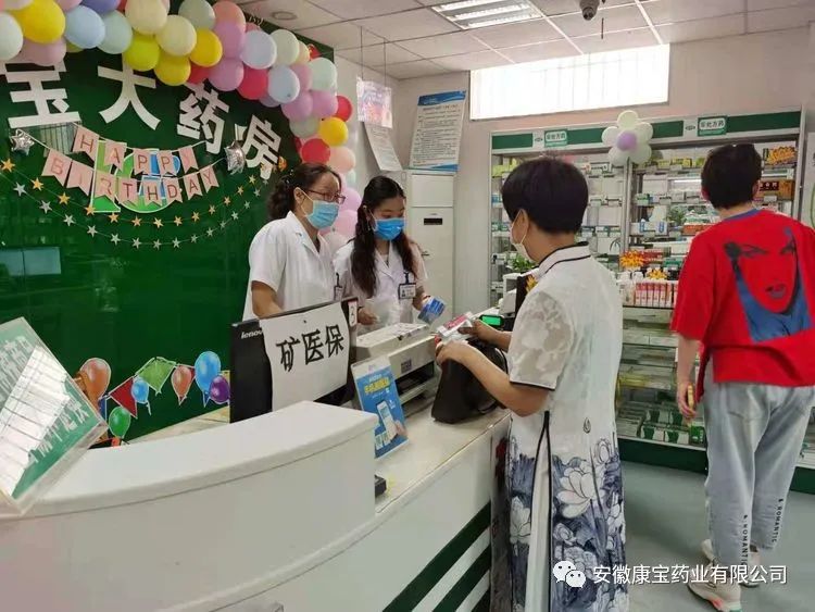 為回饋周邊百姓康寶大藥房泉山店推出優惠活動,員工們提前張貼海報、裝飾店堂、備足貨源,為店慶活動做了充分的準備。